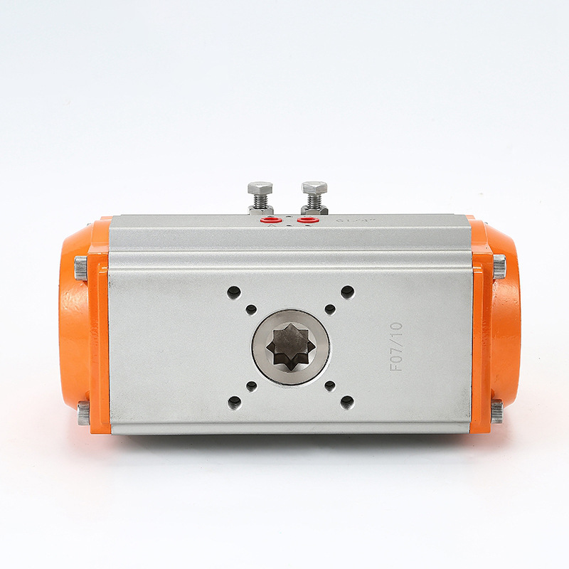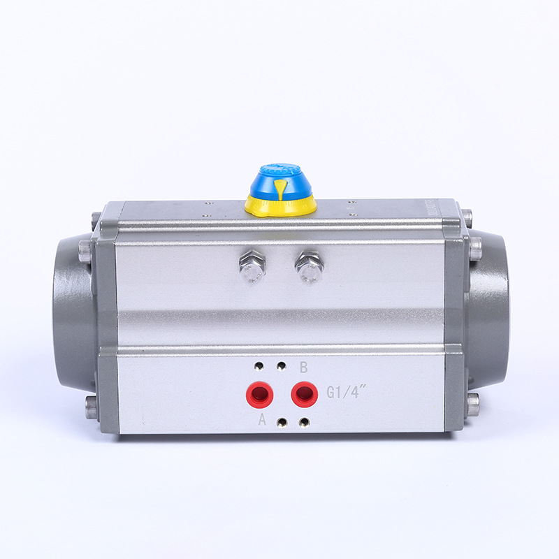 气动执行器是将输入的气压信号转换成90度,再以扭转矩形形式输出的执行机构。该系列气动执行器是一种外型小、性能高的的角行程执行结构,分为双作用气控型和单作用气控型两种,与角行程型控制阀组合可用于调节和开关的场合,也可用于其他回转运动的场合,如球阀,蝶阀等。